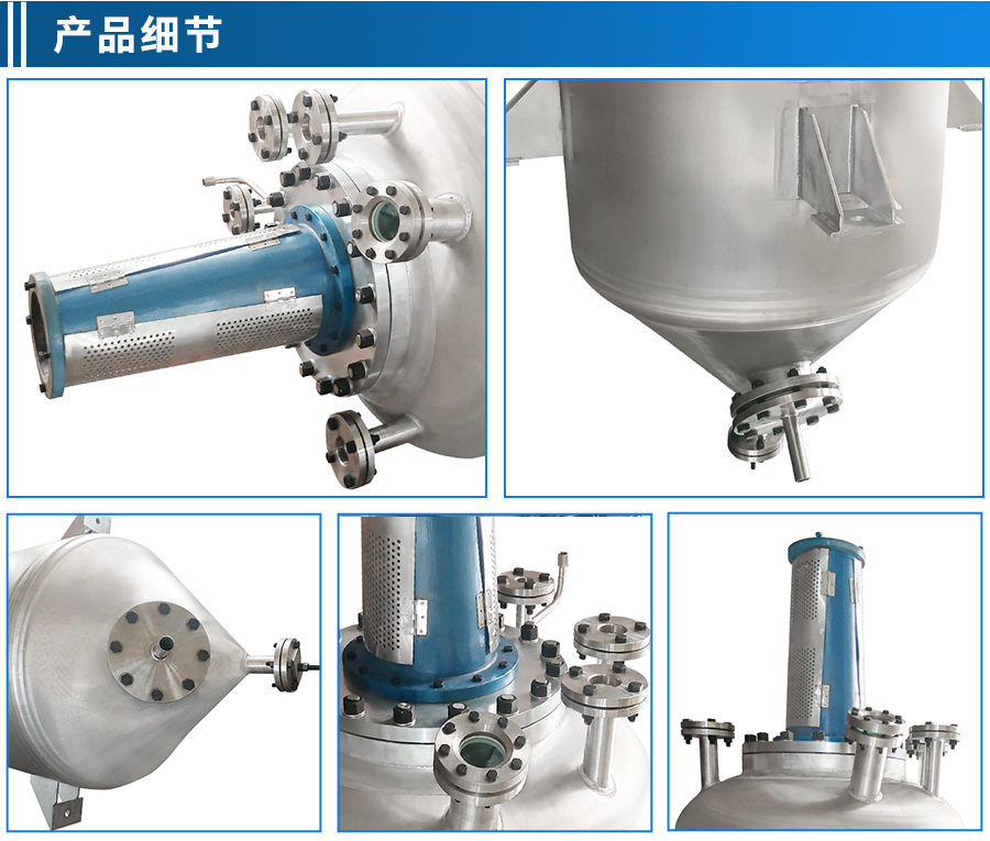 其他附件 如果用戶在釜蓋、釜體開口、內(nèi)部結構、壓力高低、攪拌槳葉、及增加其他輔助裝置(如冷凝回流裝置、冷凝器、恒壓加料罐、接收裝置)等有特殊要求,可完全按用戶的要求加工制造。