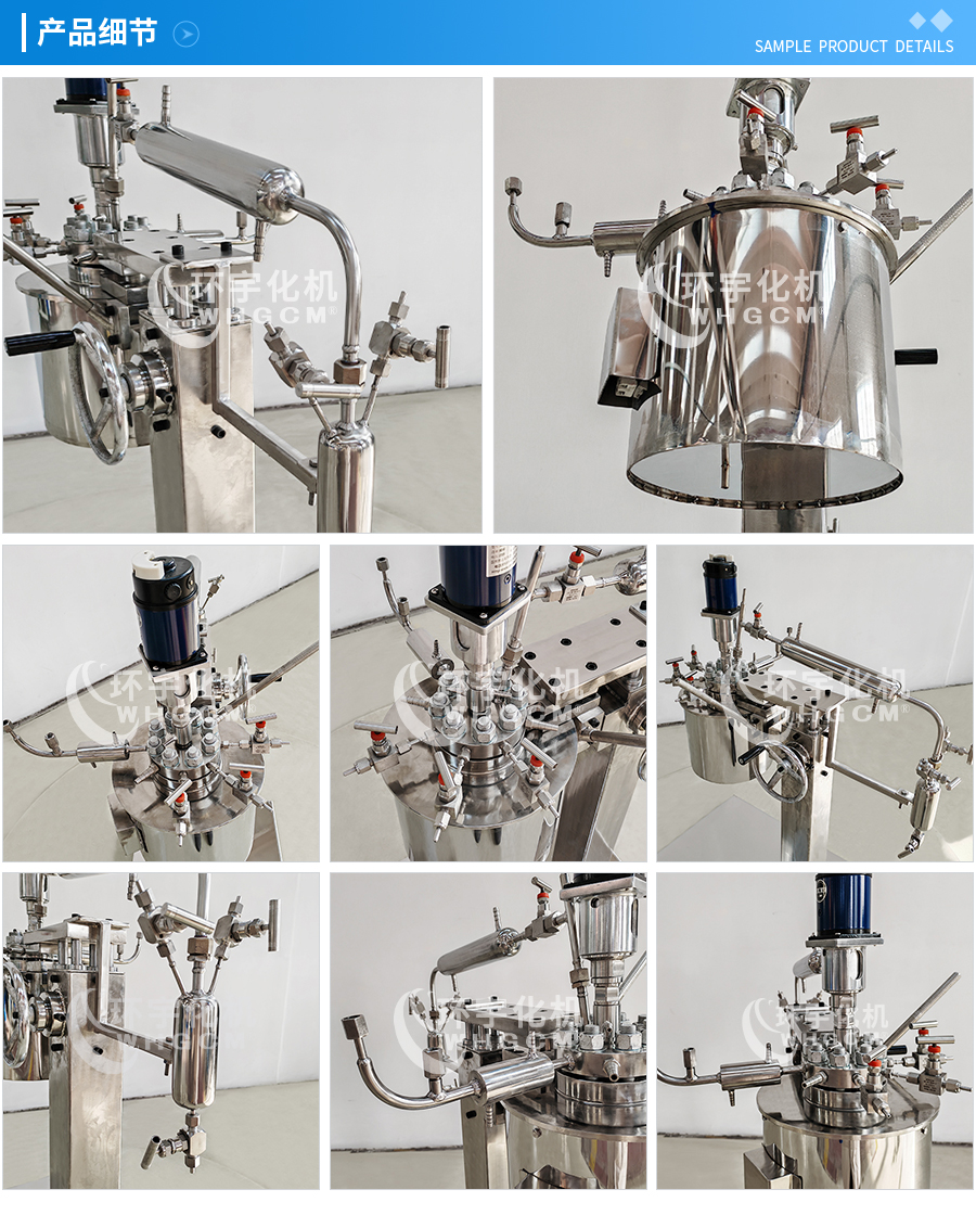 其他附件 如果用戶在釜蓋、釜體開口、內(nèi)部結(jié)構(gòu)、壓力高低、攪拌槳葉、及增加其他輔助裝置(如冷凝回流裝置、冷凝器、恒壓加料罐、接收裝置)等有特殊要求,可完全按用戶的要求加工制造